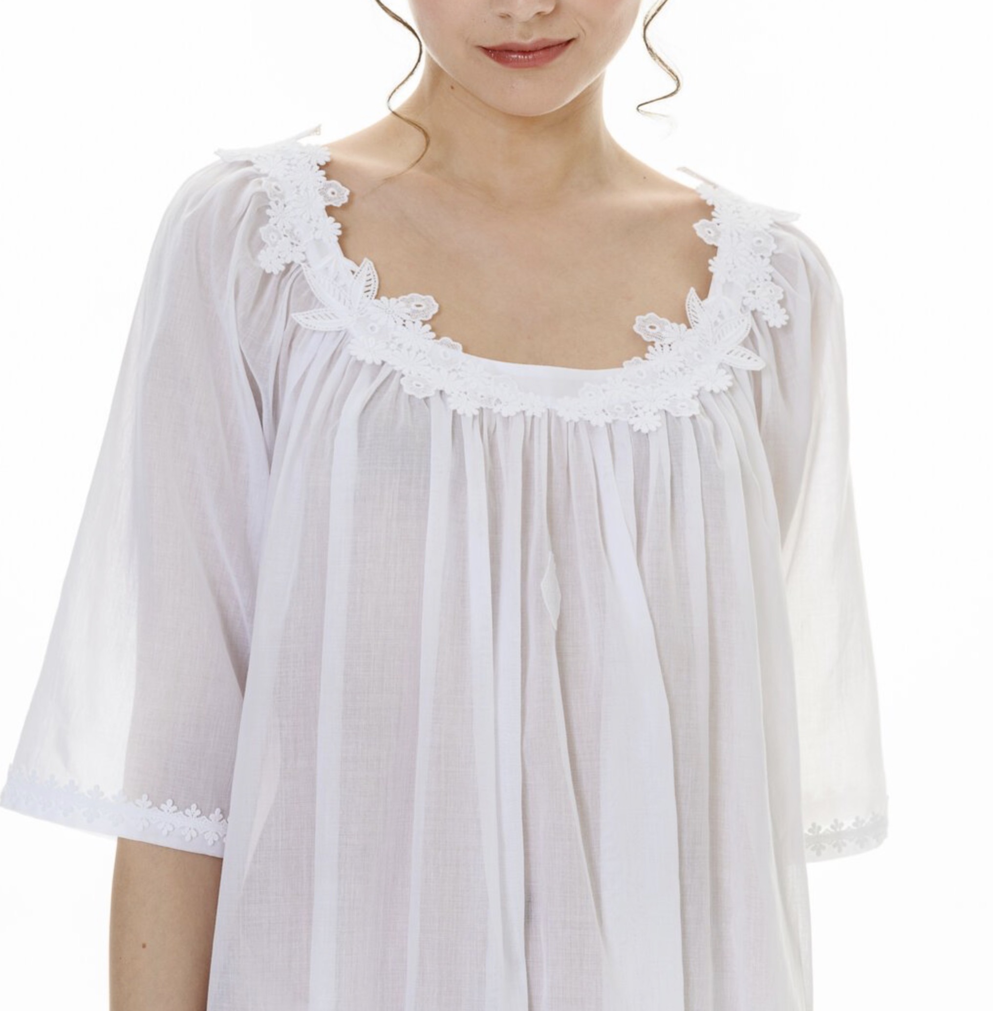 CELESTINE steht seit 40 Jahren für außergewöhnliche Nachtwäsche aus feinster Baumwolle und kostbaren Spitzen. Die Kollektionen werden weltweit als Sammlerstücke geschätzt für ihren einzigartigen, zeitlosen und luxuriösen Stil. Tragen Sie Celestine Nachtwäsche, fühlt es sich an wie purer Luxus auf der Haut – leicht, angenehm und ultra fein. Ein Hauch von Nostalgie trifft auf höchste Handwerkskunst – das Nachthemd Marcella-2 vereint Eleganz und Komfort auf unverwechselbare Weise. Die locker fallende A-Linie sorgt für ein luftiges Tragegefühl, während die halblangen Ärmel mit zarter Spitzenverzierung zusätzliche Raffinesse verleihen. Der florale Spitzenausschnitt rundet das feminine Design stilvoll ab. Mit einer Länge von 122 cm ist dieses Modell ein stilvoller Begleiter für traumhafte Nächte.