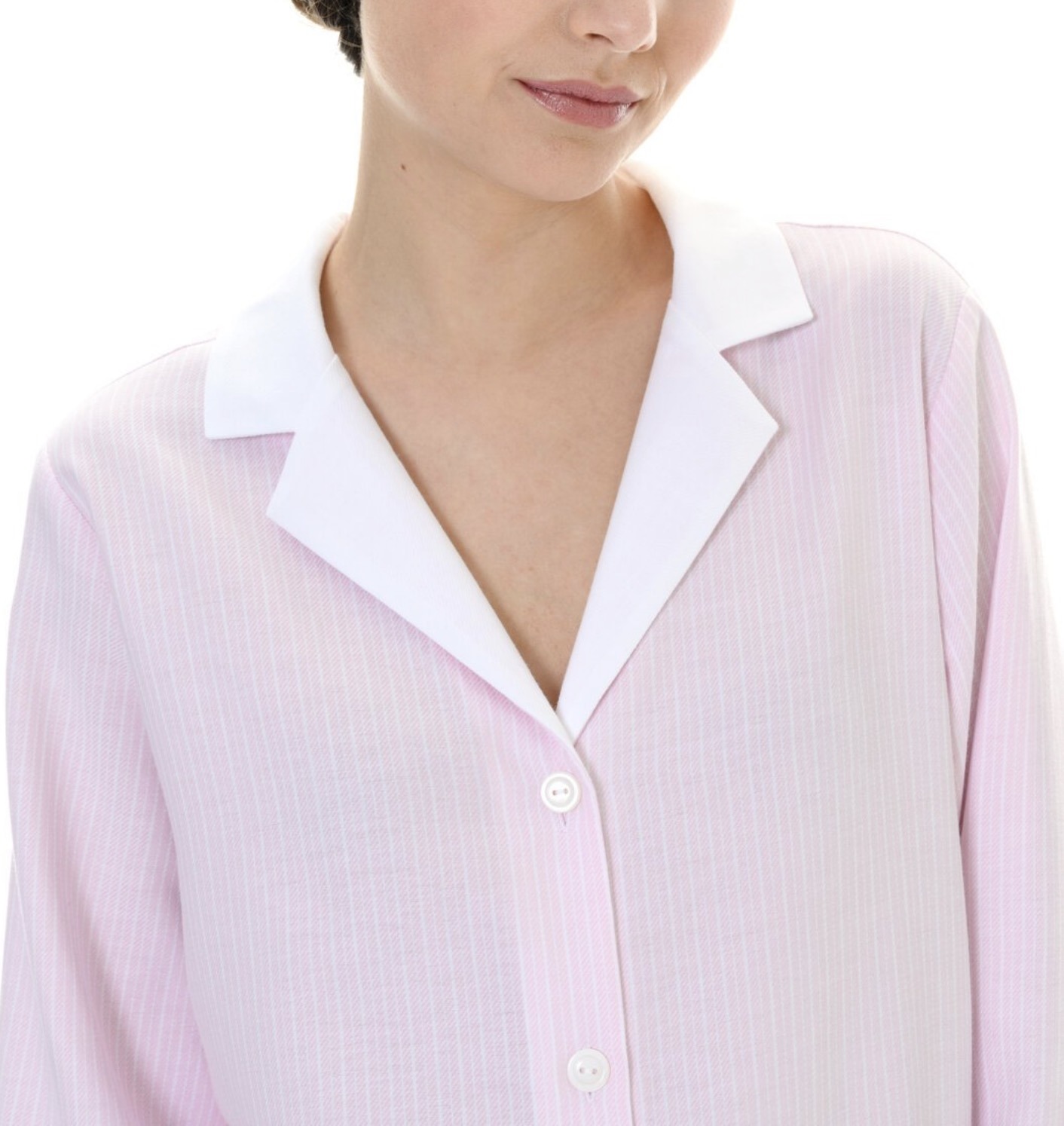 Erleben Sie tiefen Schlaf in edler Einfachheit mit dem Pyjama „Ellie“ von Celestine. Der klassische Schnitt mit Hemdkragen und Knopfleiste verbindet sich harmonisch mit weich fließender Baumwollflanellstruktur. Die zarten Farbnuancen in rose/Weiß unterstreichen die feminine Eleganz, während die feinen Kontrastdetails an Kragen und Manschetten subtile Akzente setzen.