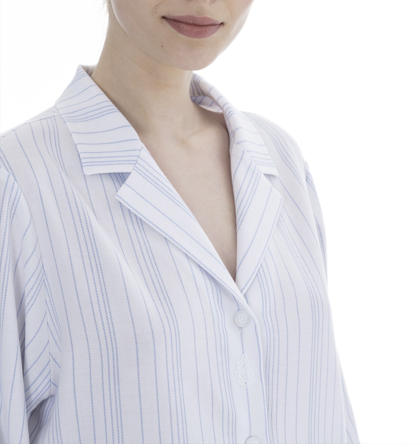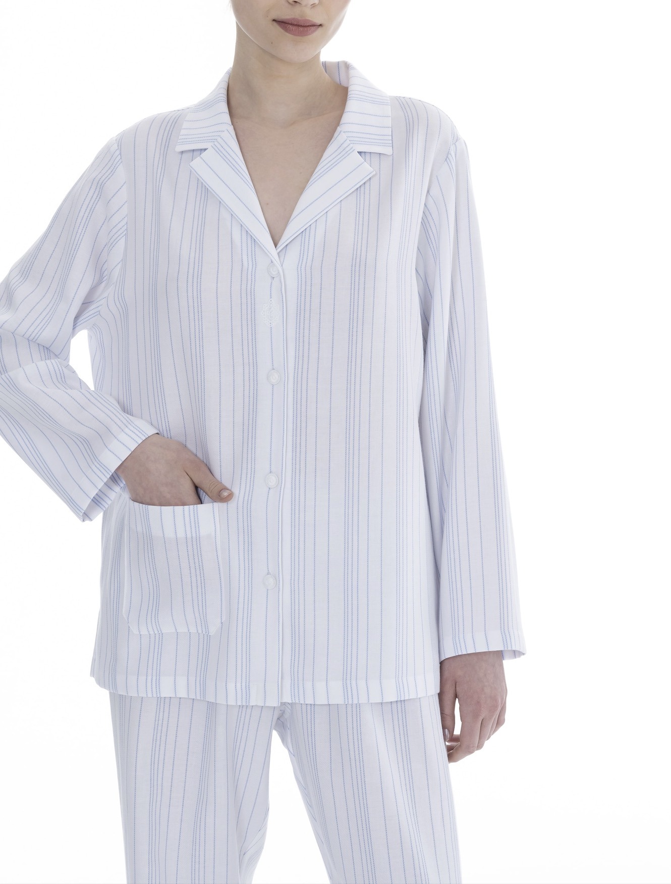 CELESTINE steht seit 40 Jahren für außergewöhnliche Nachtwäsche aus feinster Baumwolle und kostbaren Spitzen. Die Kollektionen werden weltweit als Sammlerstücke geschätzt für ihren einzigartigen, zeitlosen und luxuriösen Stil. Tragen sie ein Celestine Produkt, fühlt es sich an wie purer Luxus auf der Haut – leicht, angenehm und ultra fein. Dieser Pyjama aus der Bea Serie von Celestine hat lange Ärmel und einen klassischen Schlafanzug-Schnitt. Das Oberteil lässt sich knöpfen und ist mit einem Kragen versehen. Auf der rechten Vorderseite befindet sich eine kleine Tasche. Den Pyjama gibt es in zwei farblichen Ausführungen rose/weiss, zart-rosa Streifen auf weißem Hintergrund und ciel/weiß, himmelblaue Streifen auf weißem Hintergrund.