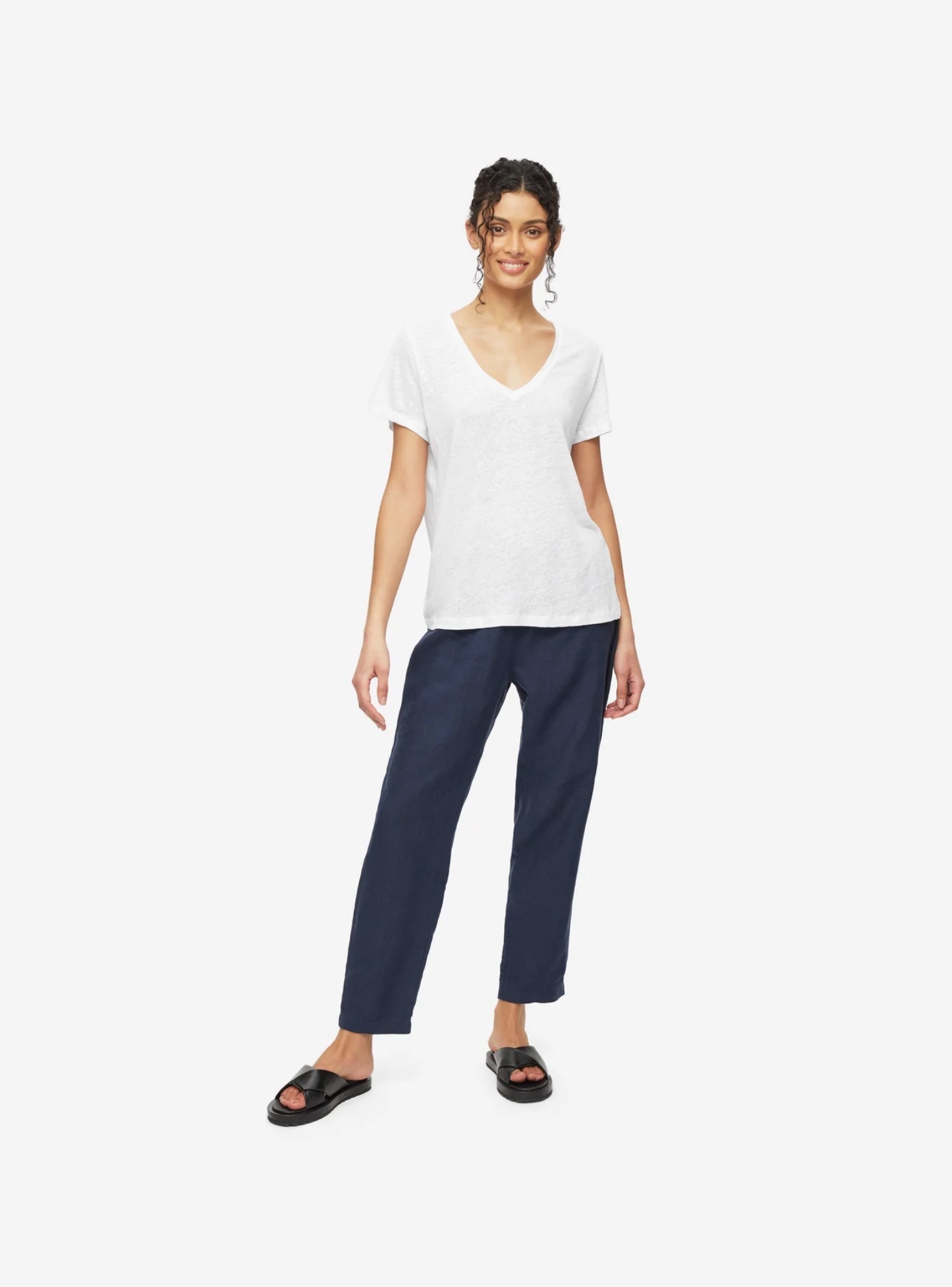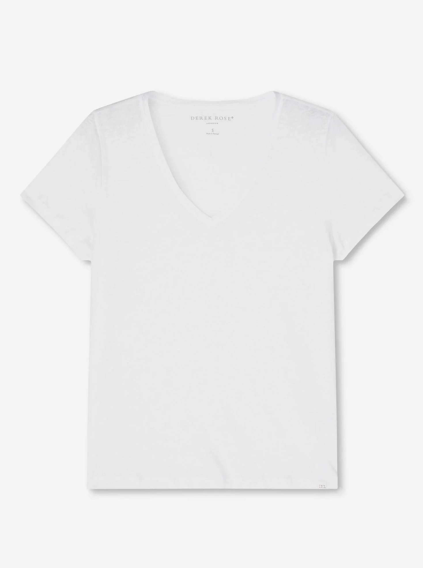 Das Jordan Tshirt ist aus 100% Leinen. Leinen ist üblicherweise ein eher raues Material – die Marke Derek Rose hat ihre Leinenware soweit revolutioniert, dass diese durch die Verarbeitung von feinem Garn und die Waschung sehr weich ist. Das Design des Shirts ist ein klassischer Tshirt-Schnitt mit V-Neck. Es lässt sich ideal mit den Shorties und Hosen von Derek Rose aber auch als Basic Alltags-Shirt tragen.