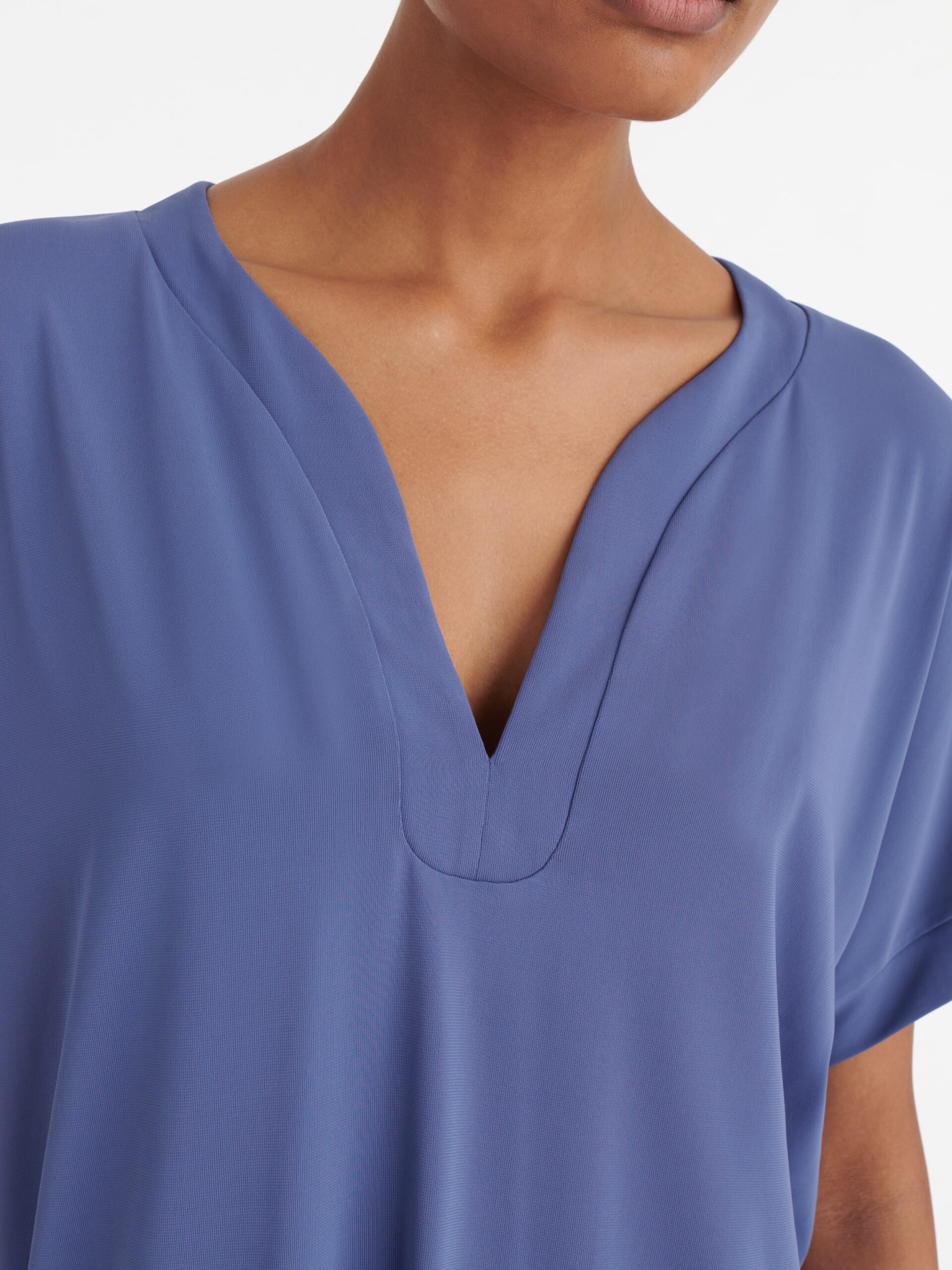 • Leicht abgerundeter V-Ausschnitt
