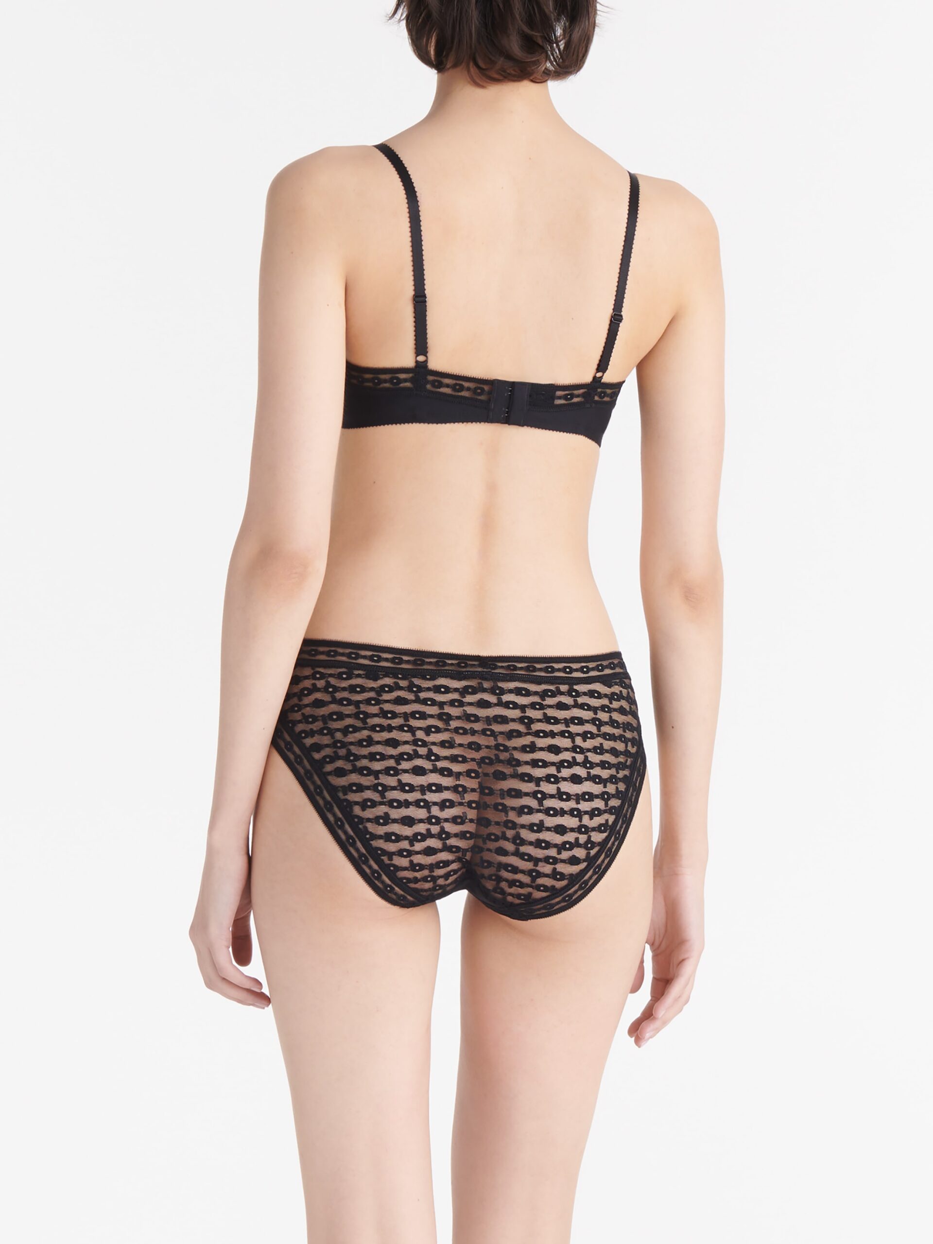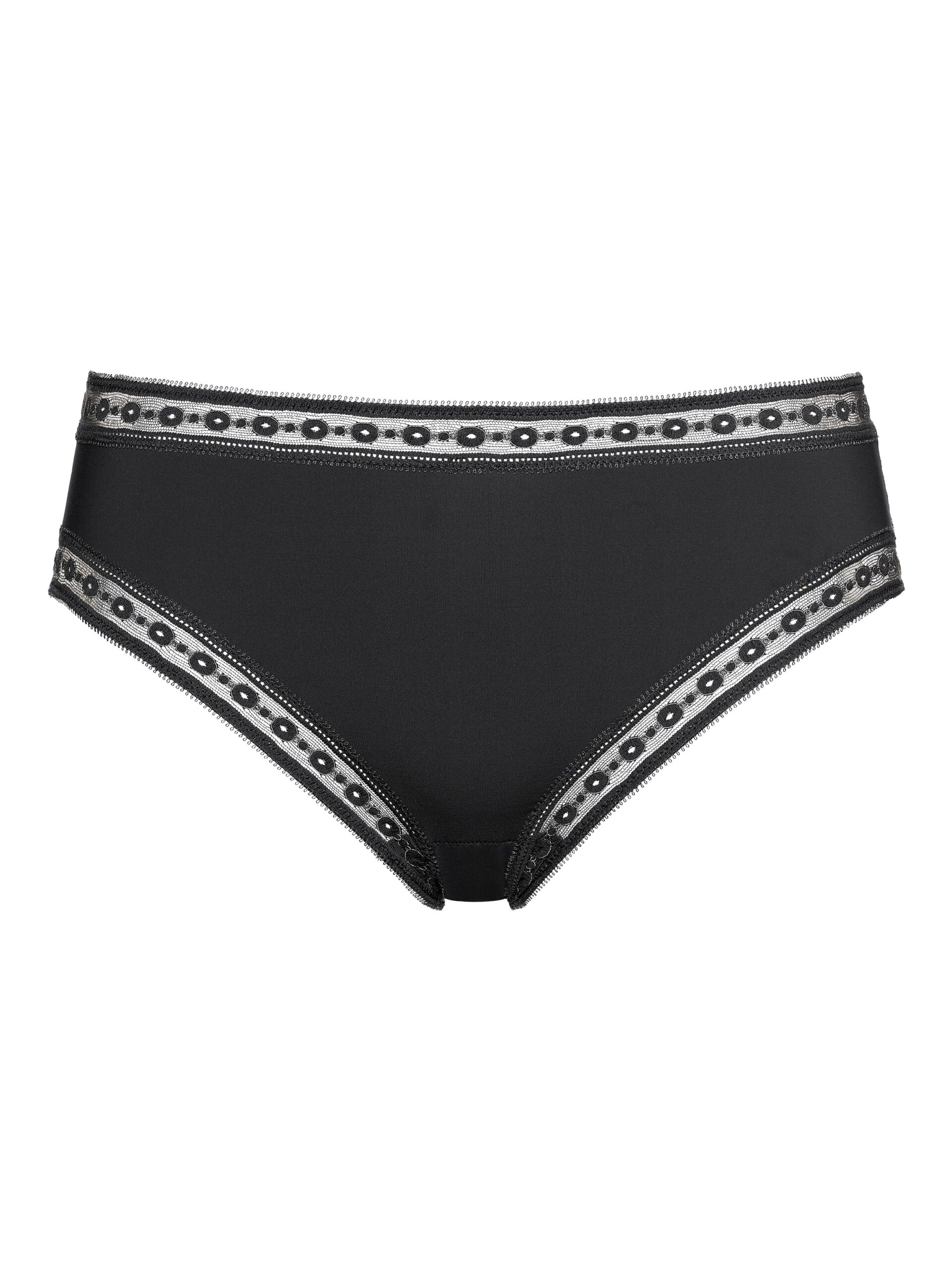 Der Slip Elixir von Eres zeichnet sich durch die Kombination aus weichem Jersey Soyeux und Leavers-Stretchspitze mit geometrischen Motiven aus. Den ebenso raffinierten wie bequemen Slip zieren durchbrochene Details an den Seiten.