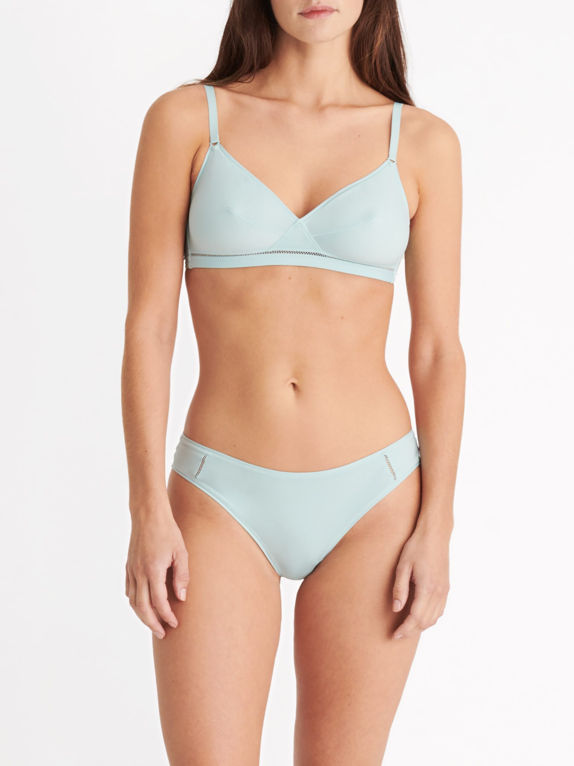 Der Mika Soyeuse String von Eres überzeugt durch seine Schlichtheit. Dieser Tanga aus einem recyceltem Polyamidgarn hergestellten Stretch-Jersey bietet von morgens bis abends unvergleichlichen Tragekomfort und sitzt wie eine zweite Haut. Mit einem Kreuznahtstich werden die Seitennähte raffiniert verziert. Unter der Kleidung trägt dieser String absolut nicht auf. Bei der Farbe Ciel de Jour handelt es sich um ein Himmelblau.