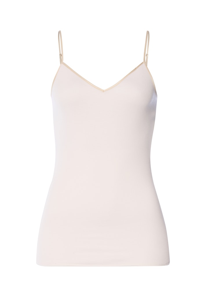 Das Cotton Seamless V-Neck Top aus der Hanro Basic-Kollektion besteht aus 100% weicher, merzerisierter Baumwolle, welche für optimalen Komfort und Tragbarkeit sorgt. Das Top überzeugt durch seine nahtlose Verarbeitung, die Hanro of Switzerland weltberühmt gemacht hat. Der edle V-Ausschnitt mit Satineinfass, sowie die verstellbaren Satinträger mit Metallschiebern garantieren Vielseitigkeit und optimale Passform. Tragen Sie das Top als Unterhemd oder unter Ihrer Bluse oder dem Blazer!