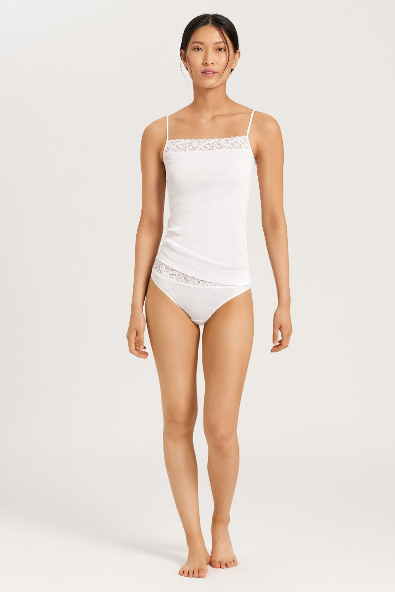 Edel und feminin – der hoch geschnittene HANRO Moments Mini Slip mit bezaubernder französischer Spitze am niedrigen Bund eignet sich perfekt zum Tragen mit niedrig geschnittenen Jeans und auf Hüfte geschnittenen Kleidungsstücken. Dieser hoch geschnittene Mini Slip besteht aus superweicher, mercerisierter 100%iger SwissCotton und verfügt über hohe Beinausschnitte, welche die Beine länger und schlanker wirken lassen.