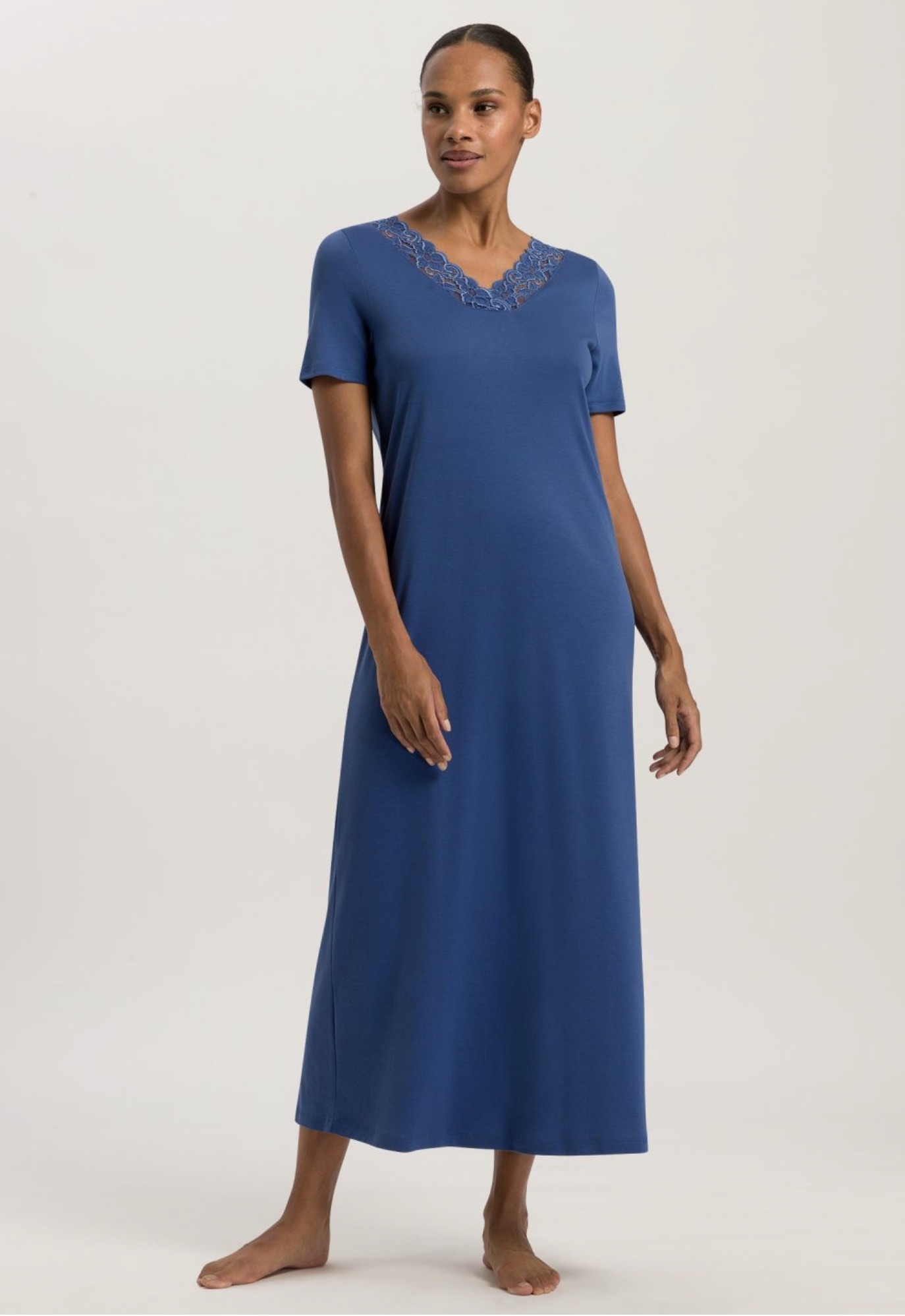 Das knöchel- bis bodenlange HANRO Nachthemd aus der beliebten Serie Moments ist Luxus für die Haut. Es besteht aus 100 % feinster, merzerisierter Baumwolle in Interlock-Qualität, die den Körper von oben bis unten sanft umschmeichelt. Die klassische Moments-Spitze am V-Ausschnitt bezaubert mit femininer Eleganz. Ein passender Slip aus der Serie ergänzt den stilvoll-eleganten Look und den außergewöhnlichen Tragekomfort des Styles.