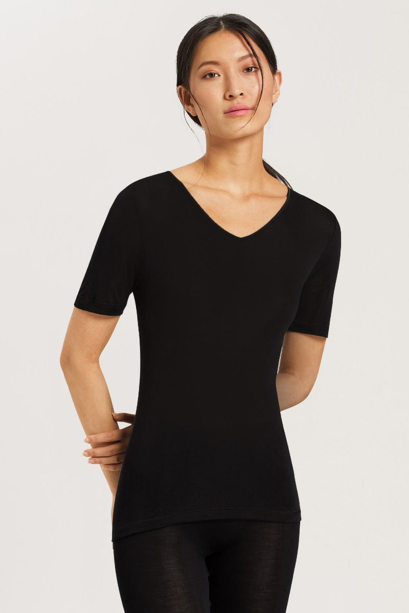 Hanro Pure Silk T-Shirt Kurzarm schwarz