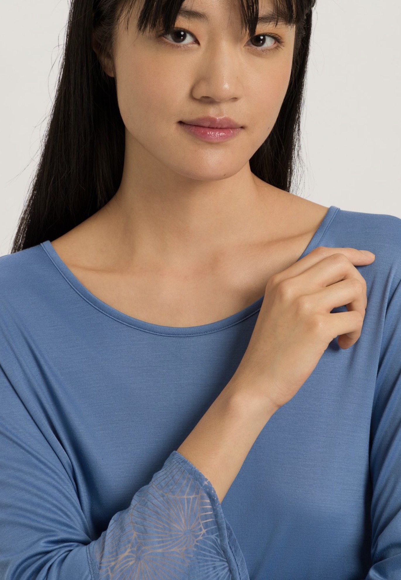 Dieser Schlafanzug aus der HANRO Serie Audrey bietet außergewöhnlichen Komfort für Tag und Nacht, besonders bei sommerlichen Temperaturen. Er besteht aus einem luxuriösen Modal-Seide-Mix aus Produktion in Österreich. Optisches Highlight sind die femininen und halbtransparenten Web-Einsätze – moderne Volants als Armabschluss. Er ist perfekt für erholsame Stunden.