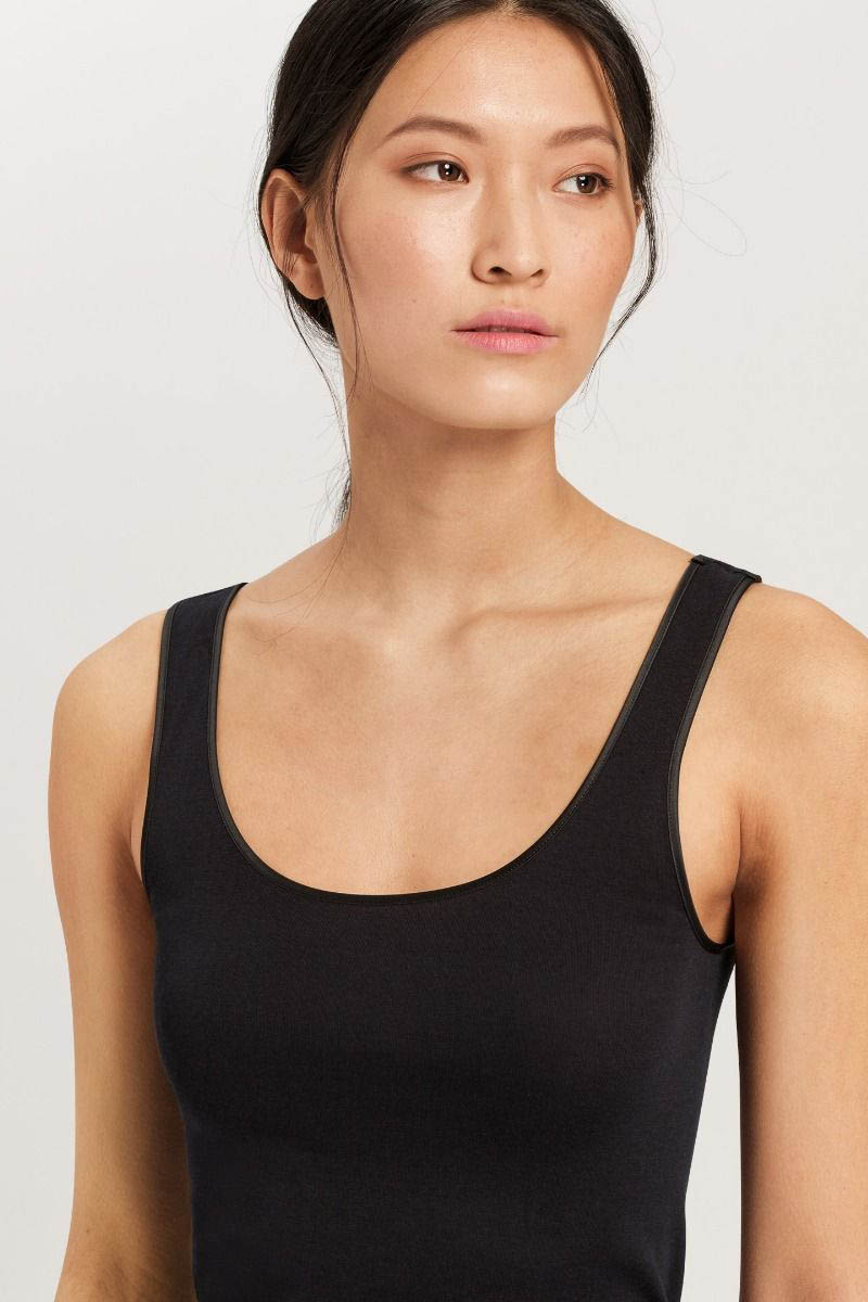 Das klassische Tank Top der Hanro Tagwache-Serie Cotton Seamless begeistert mit wunderbar weicher, merzerisierter Baumwolle in feiner Ripp-Qualität und Nahtlos-Verarbeitung für höchsten Tragekomfort. Der cleane Schnitt des Seamless-Styles wird mit besonders flachen Einfassen an Hals- und Armausschnitt aus zartem, leicht glänzendem Satin veredelt. Ideal ist das Tank Top auch als Stylingpartner für Oberbekleidung.