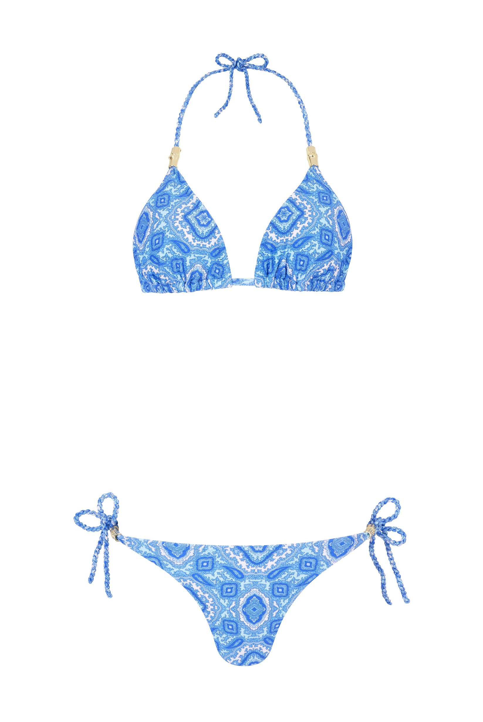 Dieses Bikini Set von Heidi Klein verbindet zeitlose Eleganz mit modernen Details und sorgt für einen stilvollen Auftritt am Strand. Das klassische Triangel-Top mit herausnehmbaren Pads bietet leichten Halt und lässt sich individuell anpassen. Die feinen Bindebänder und die goldfarbene Hardware setzen edle Akzente und unterstreichen den hochwertigen Look. Gefertigt aus strukturierter Honeycomb-Qualität, bietet das Set nicht nur Komfort, sondern auch eine besonders schöne Passform.
