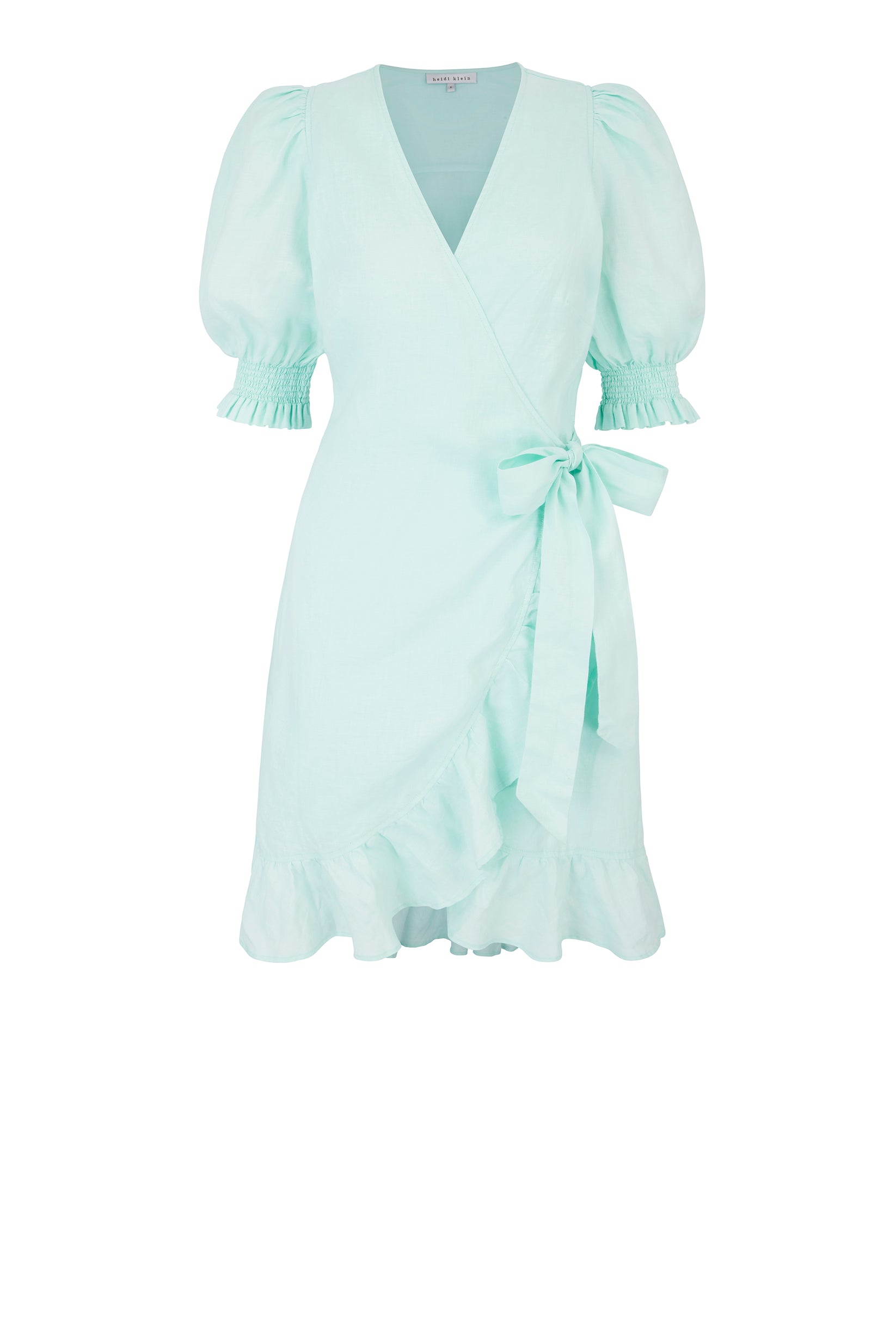 Dieses Kleid von Heidi Klein vereint feminine Leichtigkeit mit einem stilvollen, sommerlichen Look. Der Wickelschnitt mit seitlicher Bindung betont die Figur auf elegante Weise, während die luftige Leinenqualität für ein angenehmes Tragegefühl sorgt. Verspielte Details wie die leicht voluminösen Ärmel und der zarte Volantsaum verleihen dem Design eine romantische Note. Ob am Strand oder bei sommerlichen Anlässen, dieses Kleid ist vielseitig kombinierbar und ein echtes Must-have.