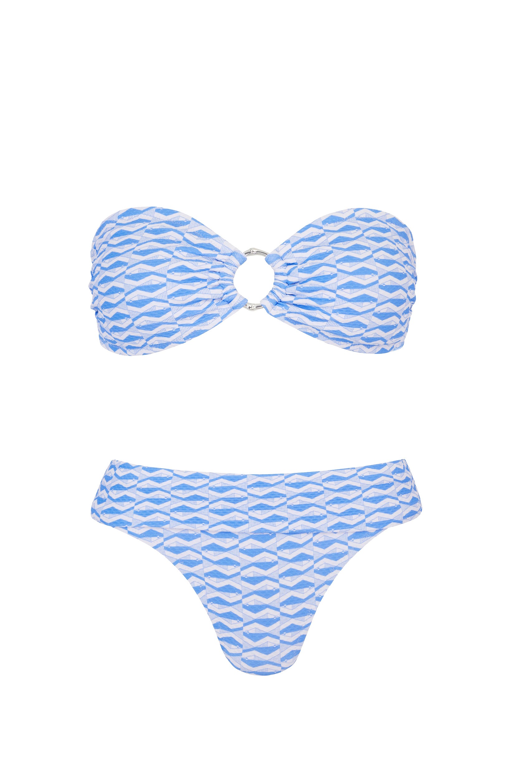 Dieses Bikini Set aus der Tinos Serie von Heidi Klein vereint moderne Eleganz mit sportiver Leichtigkeit. Das Bandeau-Top mit charakteristischem Ringdetail und feiner Struktur kann sowohl trägerlos als auch mit Neckholder getragen werden und bietet vielseitige Stylingmöglichkeiten. Die herausnehmbaren Pads und der verstellbare Rücken sorgen für individuellen Komfort. Ergänzt wird der Look durch das passende Bikini-Höschen mit umklappbarem Bund, das sich flexibel anpassen lässt und eine schmeichelhafte Passform bietet. Das strukturierte Material und das grafische Muster verleihen dem Set eine besondere, hochwertige Optik.