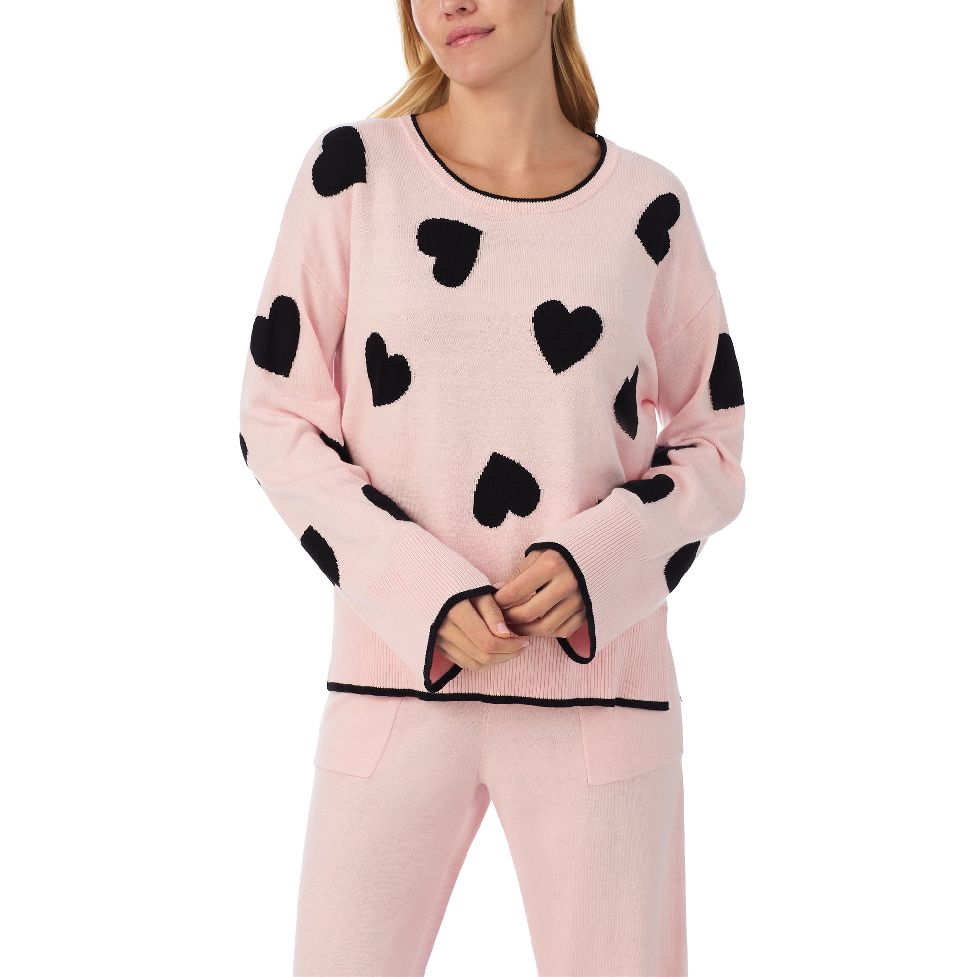 Ein stilvoller Begleiter für entspannte Stunden zu Hause: Dieser zweiteilige Hausanzug von Kate Spade vereint verspieltes Design mit hohem Komfort. Das rosafarbene Oberteil ist mit großen schwarzen Herzen verziert und wird durch kontrastierende Abschlüsse an Ärmeln, Saum und Ausschnitt modisch akzentuiert. Die weit geschnittene Hose mit aufgesetzten Taschen rundet den Look harmonisch ab – perfekt für gemütliche Momente mit modischem Anspruch.