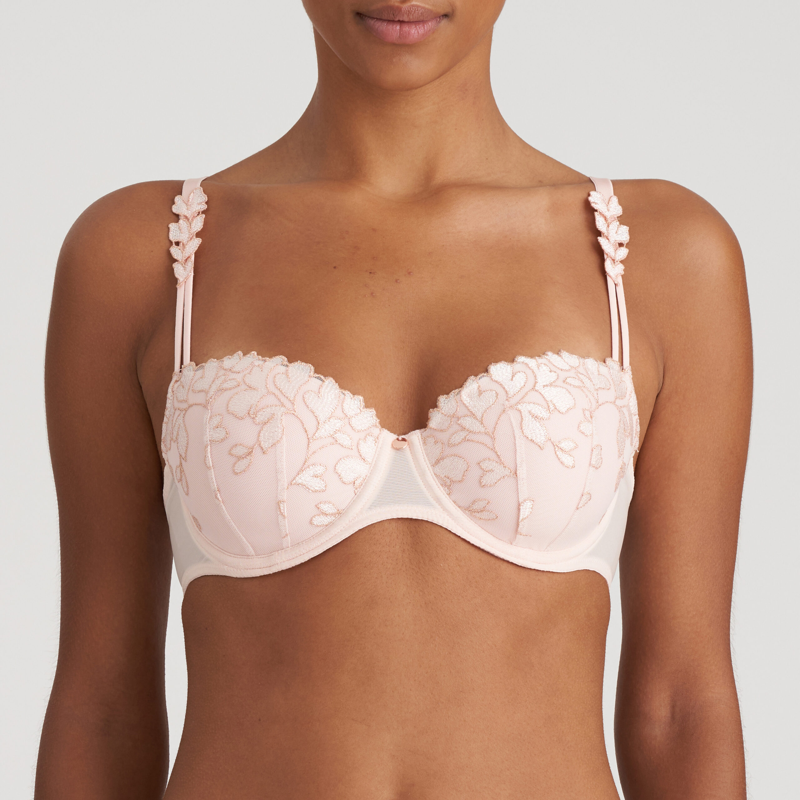 Der Balconette-BH mit gepolsterten Cups ist an den Cups mit einer grafischen Blumenstickerei versehen. Seine Passform betont leicht die Wölbung des Dekolletés. Raffinierte Details, wie die eleganten Träger, verleihen dem BH ein besonderes Extra.