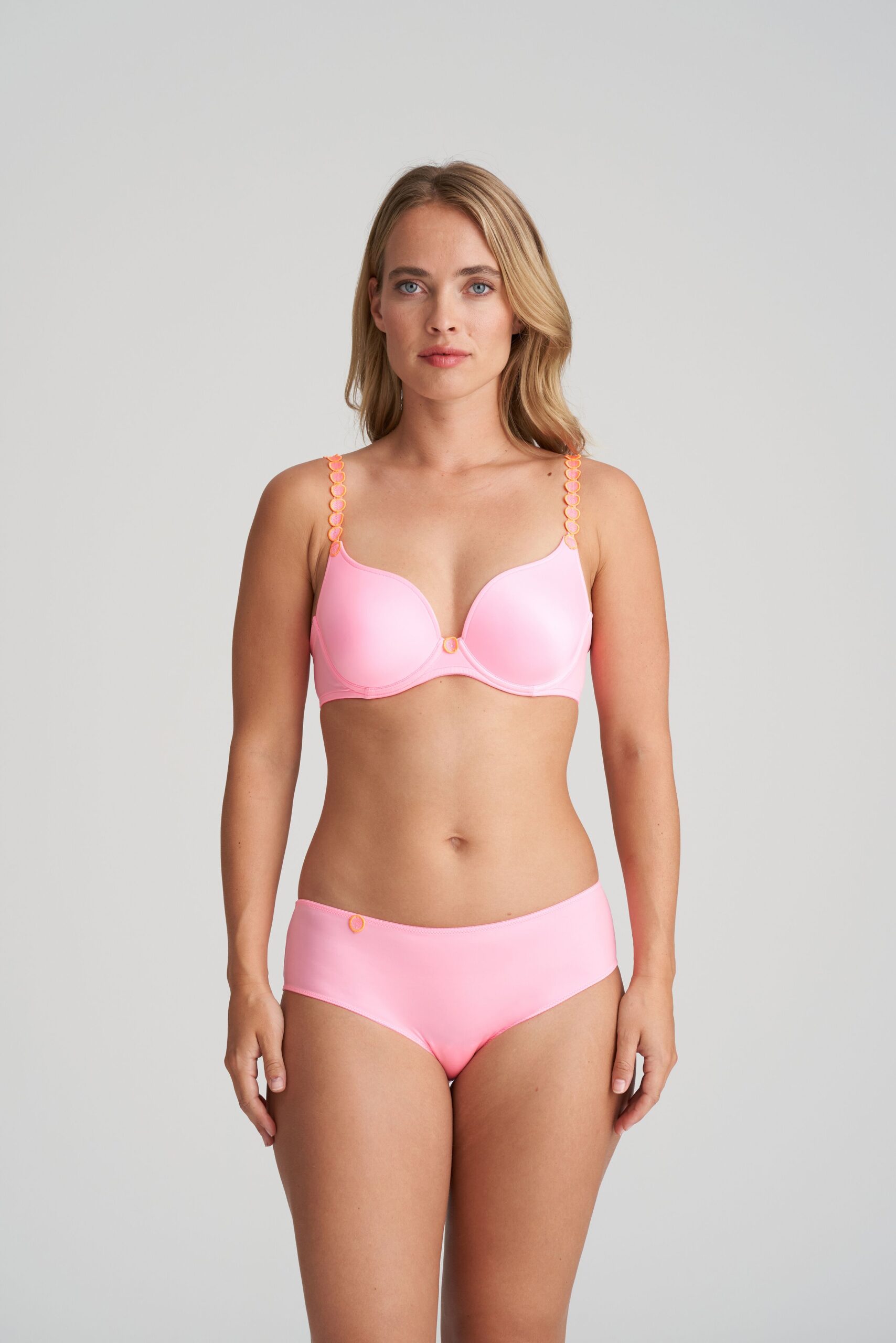 Die Hotpants aus der Serie Tom von Marie Jo bietet unglaublich hohen Komfort. Das federleichte Material ist auf der Haut kaum zu spüren und die Rückseite wurde komplett nahtlos verarbeitet. Der Po wird weitestgehend bedeckt und die flachen Nähte machen den Slip unsichtbar.