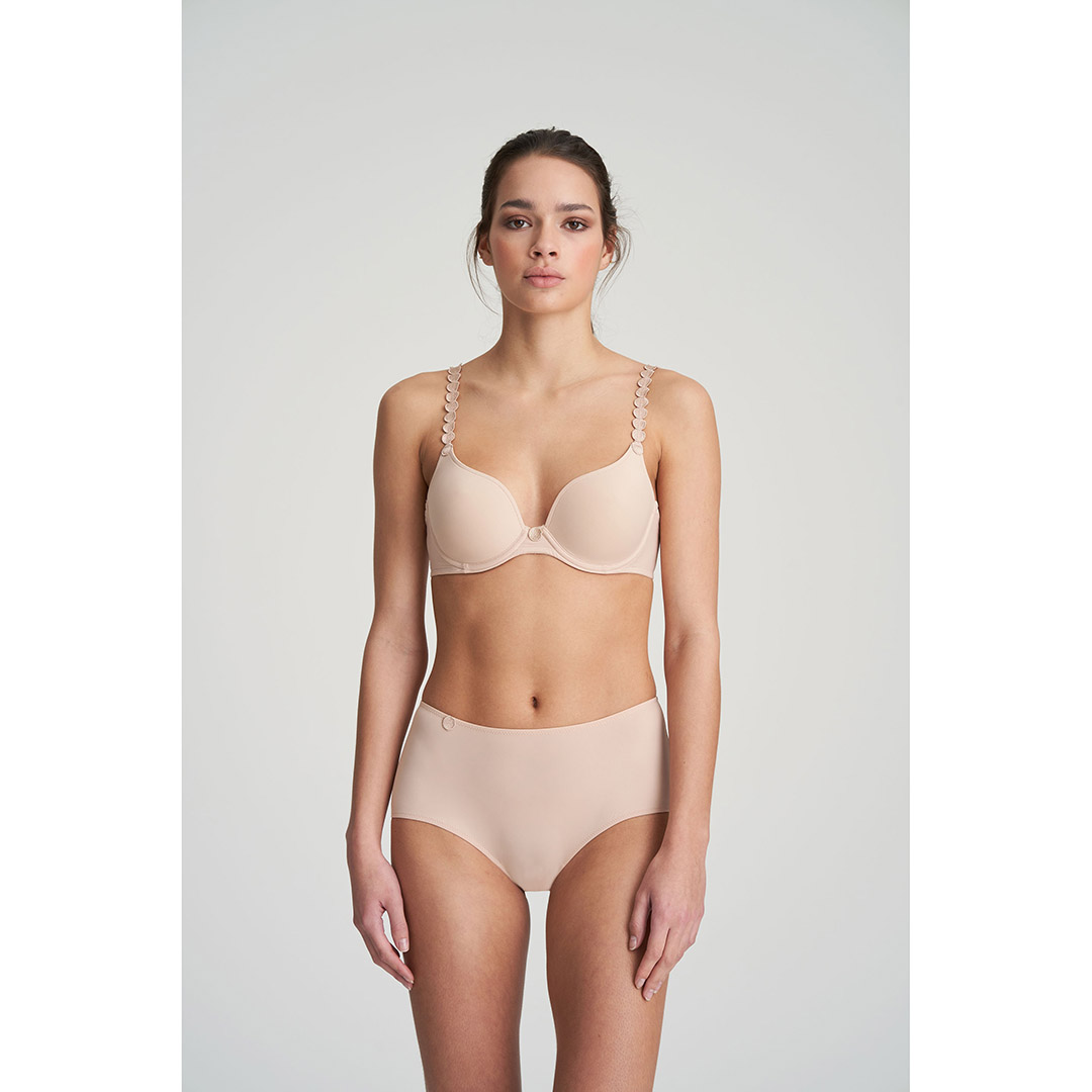 Der luxuriöse und gleichzeitig schlichte BH aus der Serie “Tom” von Marie Jo ist ein Multitalent. Die gepolsterten, herzförmigen Cups bedecken einen großen Teil der Brust. Die Träger können sowohl gerade, als auch als Neckholder-Modell getragen werden.