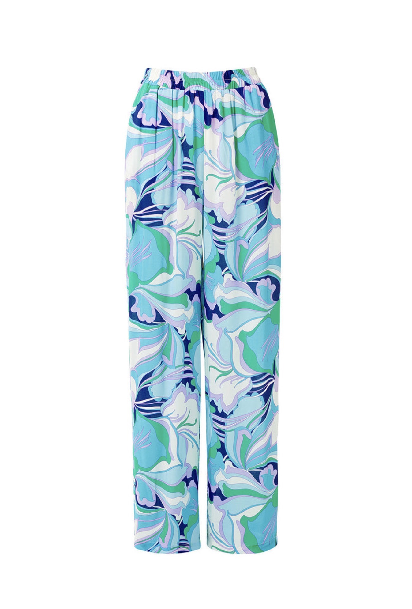 Verleihen Sie Ihrer Garderobe mit der Olivia Hose von Melissa Odabash einen Hauch von 70er-Jahre-Flair. Die Hose ist mit dem lebendigen und unkonventionellen Bloom-Print von Odabash verziert und leuchtet in tollen grün und blau Tönen. Die Hose hat ein weites Bein und einen lockeren Schnitt mit Gummizug in der Taille. Kombinieren Sie es mit ihrer Badebekleidung oder der dazu passenden Paige-Bluse für einen lässig-chicen Gesamtlook.