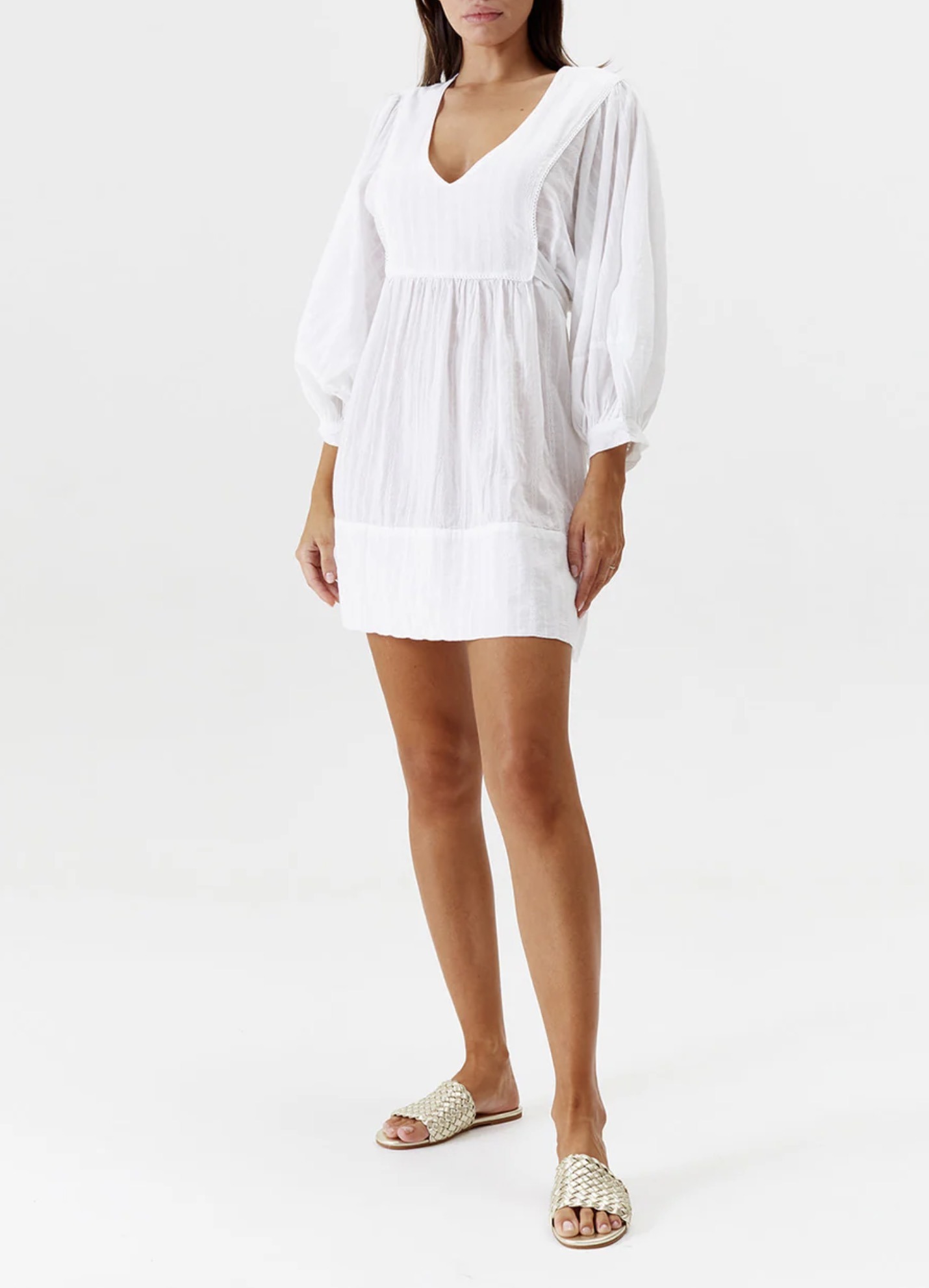Frisch und klassisch in Weiß: Aktualisieren Sie Ihre Warmwetter-Garderobe mit dem Camilla-Kleid von Melissa Odabash. Als Teil der Cruise 2024-Kollektion ist es aus hochwertiger Baumwolle gefertigt. Dieser Stil ist für eine entspannte Smock-Silhouette geschnitten und verfügt über in den Stoff eingewebte Streifen, einen V-Ausschnitt, Armbandärmel und wird durch ein Bindeband auf der Rückseite abgerundet, um die Taille zu betonen. Stylingtipp: Halten Sie den Look schlicht, indem Sie ihn mit zartem Schmuck und ein paar Sandalen kombinieren.