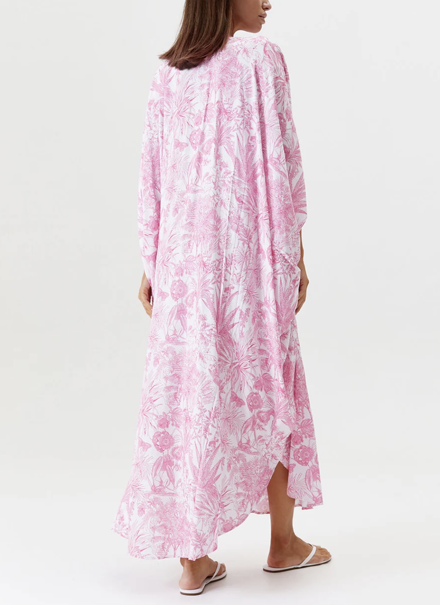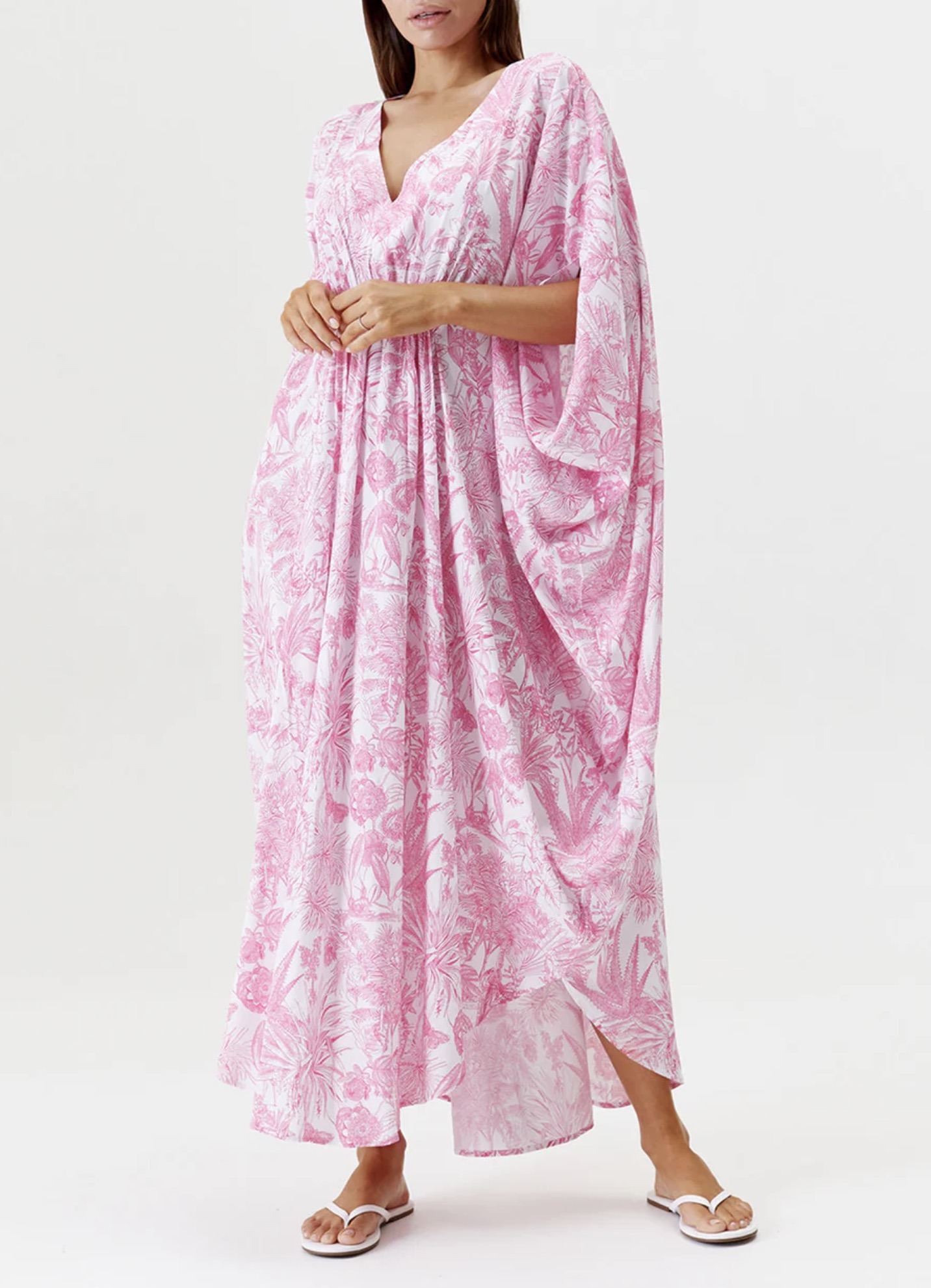 Mit seiner tollen Silhouette und der eleganten Maxilänge ist der Frederica-Kaftan von Melissa Odabash eine glamouröse Ergänzung Ihrer Garderobe. Dieses elegante Stück mit dem zarten und romantischen Exotica-Print ist sehr angenehm zu tragen durch sein zartes Material und den lockeren Schnitt. Es ist Kaftan-Stil gehalten, hat einen V-Ausschnitt, bauschige Ärmel und einen bequemen, formgebenden elastischen Bund.