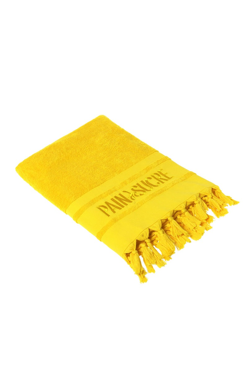 Das Badetuch Zaina passt farblich in das Farbschema der Pain de Sucre Kollektion. Es hat eine tolle, weiche Qualität und ist aus 100% Baumwoll-Frottee. Ein hübsches Detail sind die Fransen an den Handtüchern und das hochwertig eingestickte Pain de Sucre Logo. Die Maße des Handtuchs sind 180cm x 100cm.