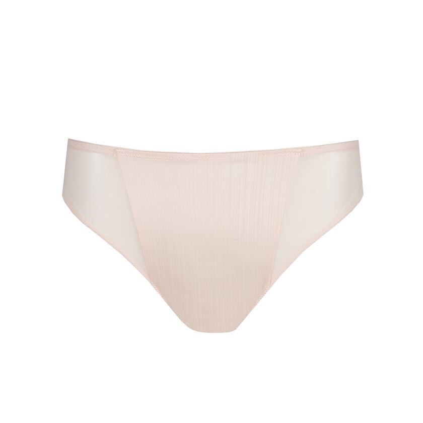 Glatter Rioslip aus der hübschen Seidensatin-Serie Knokke von Prima Donna. Der Slip ist aus einem weichem Stoff mit glänzendem Streifendruck und Tülleinsätzen an den Seiten.