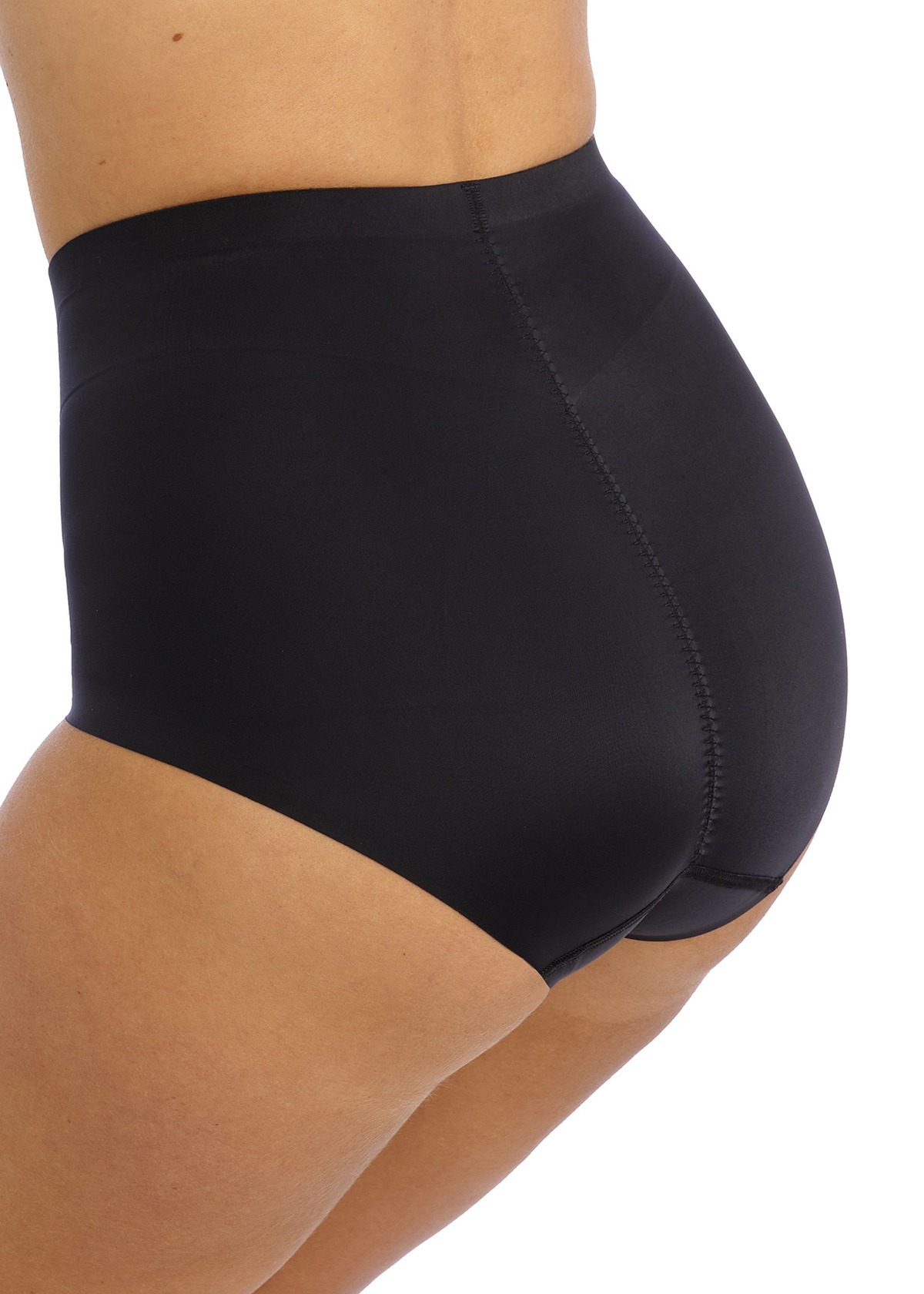- Der Schnitt sitzt hoch über der Taille und formt die Körpermitte/Taille